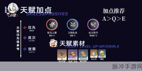 对于阿蕾奇诺来说,天赋加点的优先级可以参考以下顺序: