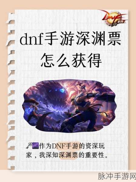 在DNF手游韩服中,深渊票是玩家进入深渊副本的重要道具,也是获取高级装备和稀有材料的主要途径,为了帮助广大玩家更快地积累深渊票,提升游戏体验,我们特别整理了这篇深渊票快速获得方式的攻略,希望这份攻略能成为你征战DNF手游韩服的得力助手。