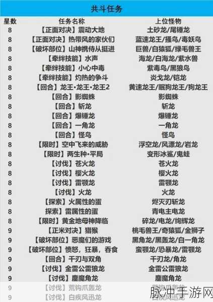 欢迎各位冒险者踏入《怪物猎人物语》的奇幻世界!作为一款深受玩家喜爱的手游,它不仅继承了怪物猎人系列的经典元素,还融入了丰富的剧情和独特的怪物养成系统,为了帮助各位玩家更好地探索这片广袤的天地,我们精心准备了这篇全任务流程深度攻略,希望能成为你冒险路上的得力助手。