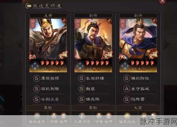 在《三国志战略版》中,武将的搭配和策略的运用同样重要,以下是一些建议,供各位玩家参考: