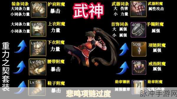 自定义装备词条优先级:属强、技能攻击力、出血伤害加成、攻击强化等,这些词条能够进一步提升武神的伤害输出能力。
