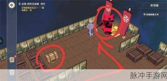 进入天守阁关卡后,玩家将首先遭遇两段精彩的剧情,这两段剧情不仅为后续的冒险铺垫了背景,还巧妙地引入了关卡中的关键元素——冷冻装置,通过点击冷冻装置进行交互,玩家可以获取冰元素,并利用它冻结水面,从而避免被电流伤害,这一基础操作将贯穿整个关卡,是玩家顺利推进的关键。