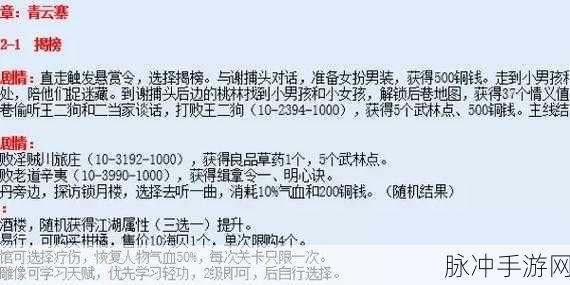 基于《江湖悠悠》手游的官方数据和玩家经验整理而成,旨在为玩家提供详尽的第二章第十关通关秘籍和全面的游戏攻略大全,希望广大玩家能够从中受益,享受更加精彩的江湖世界。