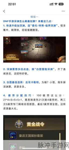 在《地下城与勇士》(DNF)手游中,黑暗城的深渊模式以其丰厚的奖励和极高的挑战性吸引了无数玩家的目光,深渊模式不仅考验玩家的战斗技巧和策略,更是获取史诗装备和稀有材料的重要途径,为了帮助广大玩家更好地了解如何开启黑暗城的深渊模式,本文将从等级要求、任务流程、门票获取、战斗技巧等多个方面进行详细解析。