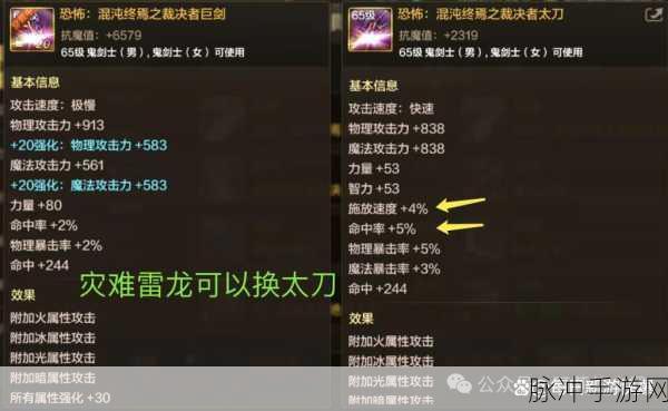 3、九游手机网游:提供了冰龙太刀之间的对比分析和选择建议。