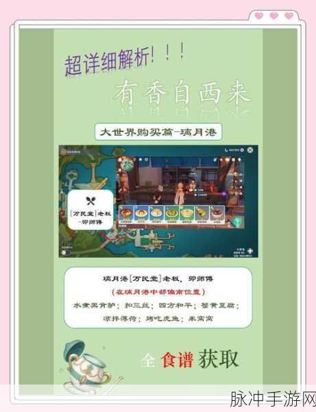 通过本次《原神》美食探索之旅,我们不仅揭秘了萨巴桑炸角的制作秘籍,还分享了与之相关的游戏内趣味活动,在《原神》的世界中,美食不仅是一种享受,更是一种文化和情感的传递,希望每一位玩家都能在探索美食的过程中,找到属于自己的乐趣和感动。